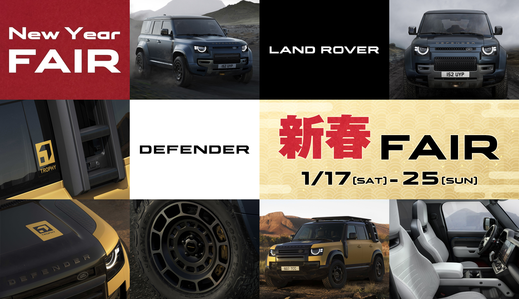 ディフェンダー即納車をご用意し、ご成約特典、毎年好評の福袋もご用意!
